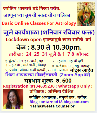 मला खात्री आहे आता माझा राहू कर्म स्थानात आहे मग काय होईल ? मंगळ अष्टमात आहे मग माझा अपघात होणार का ? असे प्रश्न कुणालाच विचारणार नाही , कारण अर्धवट ज्ञान सुद्धा घातक असते. अथांग महासागरासारखे हे शास्त्र शिकायला आपला उभा जन्मही अपुरा होईल . लिहिण्यासारखे खूप आहे . तरीही आज इतकच .
